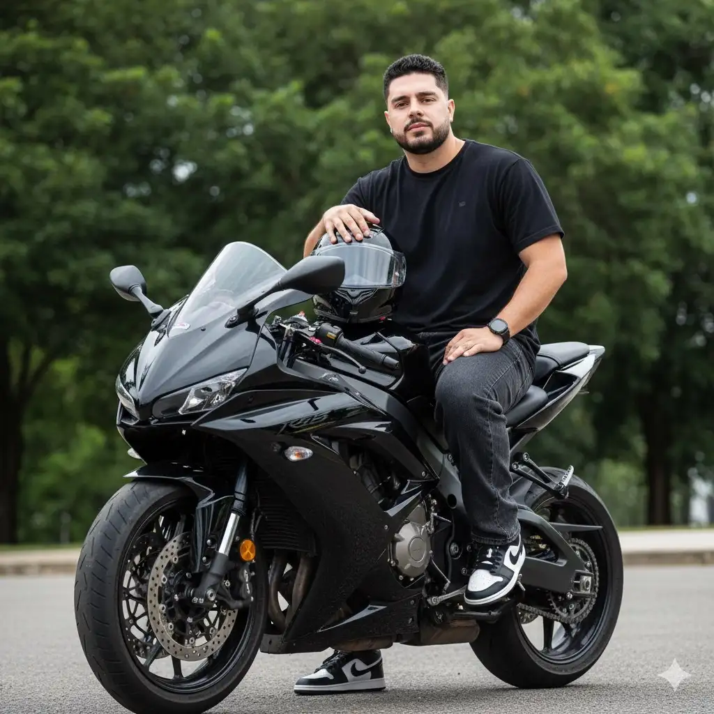 "Please use the user's reference image to capture and apply all of their facial features, facial structure, eye color, skin tone, hair style, and color with maximum fidelity. The goal is to create a version of the user in this cinematic portrait. The clothing, accessories, the pose next to the horse, the confident expression, the diffuse natural lighting, and the open field setting should be rendered as described, creating a perfect fusion between the user's identity and the aesthetics of the image."